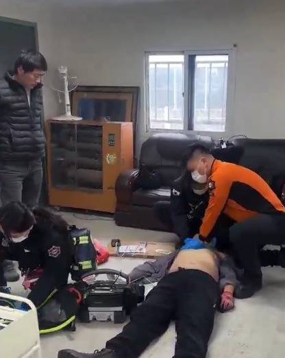 2025年3月1日,崔震洋开展学术交流途中,途经韩国京畿道平泽市浦升邑西东大路一处施工路段时,发现工地路旁人群聚集,一名施工人员倒地不起,情况万分危急。
