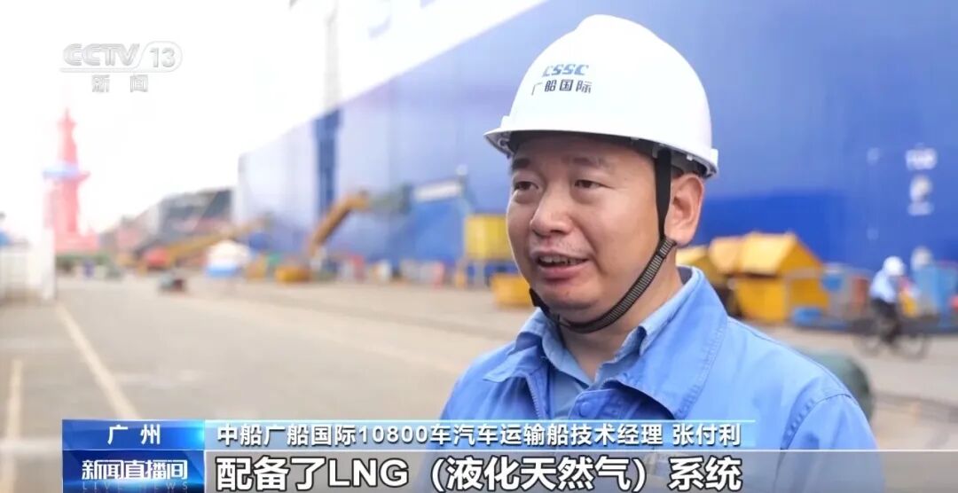 中船广船国际10800车汽车运输船技术经理 张付利:配备了LNG系统,还带了轴发电系统,在海上可以单独用轴带发电机给全船供电,这也是节能的重要方面。而且本船还做了一些氨燃料还有甲醇燃料的前期论证,如果船东有需要,就可以进行甲醇或氨燃料的改装。