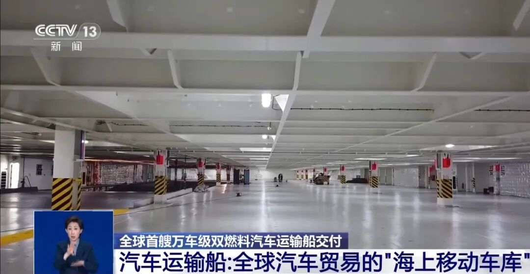 28日交付的全球首艘万车级汽车运输船长230米,型宽40米,设计了14层车库甲板,可灵活装载电动汽车、氢能源汽车及重型卡车等多元车型。同时,船舶还搭载了最新的绿色燃料系统,符合全球最新环保要求。