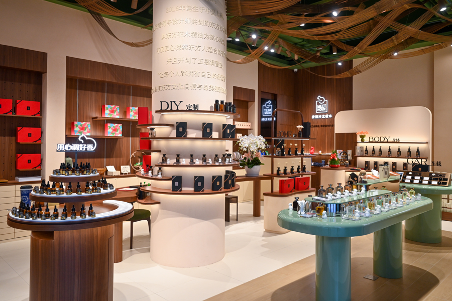 “过去,品牌习惯于按年龄、性别、城市等纵向维度划分消费者。如今面对新的消费趋势,我们转为横向切分,即以具体场景来划分,比如早上出门工作、假期外出旅行、或是请朋友到家中小聚等不同时刻,消费者需要使用怎样的香水香氛。”PERFUME BOX拾氛气盒品牌总监潘轶珺表示,当空间以体验做引导,消费者也会放慢脚步。在拾氛气盒,平均每位消费者的停留时长约为20至30分钟。